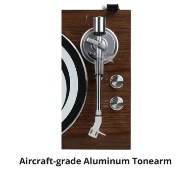 - Straight aluminum tonearm is constructed of a single piece of aircraft-grade aluminum; high rigidity combined with low friction bearings allows tone arm to track even the subtlest grooves in a record with ease